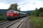 Hier 218 390-3 mit einem RE16 von Hof Hbf. nach Leipzig Hbf., dieser Zug stand am 18.8.2010 in Reichenbach(Vogtl).