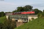 218 390-3 und 434-9 mit dem IC 2012 (Sonthofen-Herford)auf der Illerbrücke in Kempten 12.8.11
