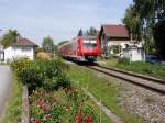 Am Erlebnistag des Bodensee-Oberschwaben-Verkehrsverbundes (bodo) fuhr auch der Erlebnis-Ringzug Bodensee - Oberschwaben - Allgäu - Bodensee. Am 11.09.2011 wurde der Ringzug Friedrichshafen - Aulendorf - Kißlegg - Wangen - Lindau - Friedrichshafen bei Lindau-Aeschach fotografiert.