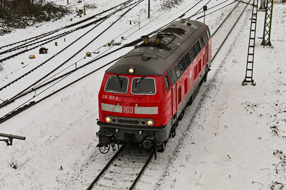 D-DB 218 397-8 fuhr am 12.01.2026 LZ durch den Lübecker Hgbf (ALR). Aufgrund eines Witterungsbedingten Ausfalls des IC 2263 wurde 218 397-8 von Bad Kleinen (WK) nach Lübeck Hbf (AL) überführt.