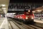 Bei Schnee und Sonne zieht 218 401-8 ihren EC gen Lindau. 5.4.15