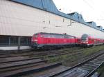 218 430 + 218 404 mit EC 194 am 19.04.2015 bei der Einfahrt in den Bahnhof Buchloe.