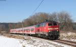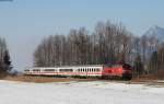 218 414-1 mit dem RE 57512 (München Hbf-Füssen) bei Leuterschach 9.3.16