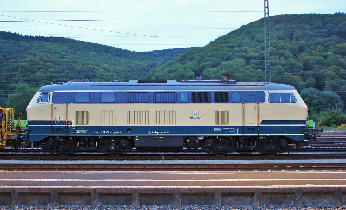218 490-1 (Railsystems) stand am 07.09.17 in Gemünden am Main.