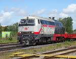 Kübler Heavy Rail 218 117 durchfahrt solo Kaarst-Broicherseite am 12 Augustus 2025 und wird vom offenbarer Weg fotografiert.