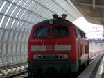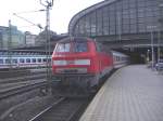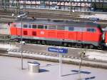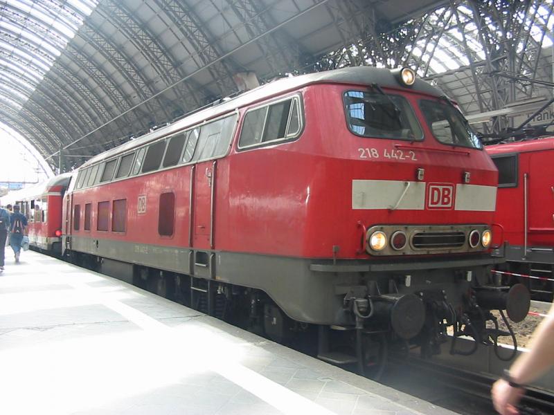 218-442 am 26.7.2005 Solo in Frankfurt a. M., man beachtet das Rotlicht am ende des Wagens.