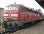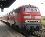 Die ozeanblaue 218 315-0 der DB Fernverkehr hat am 26.08.2025 einen IC aus Lübeck nach Rostock Hbf gebracht. Jetzt rollt die Maschine bis zum nächsten Einsatz in die Abstellung.