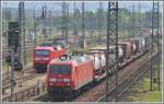 145 060-0 zog zusammen mit 145 077-4, 232 347-5 und einen Güterzug, durch Vietznitz.