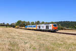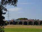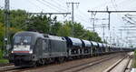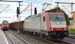 DB Cargo AG, Mainz mit "232 241-0" (NVR: "92 80 1232 241-0 D-DB") und einem Ganzzug Drehgestell-Flachwagen Durchfahrt Brandenburg Hbf. Richtung Stahlwerk am 31.08.22