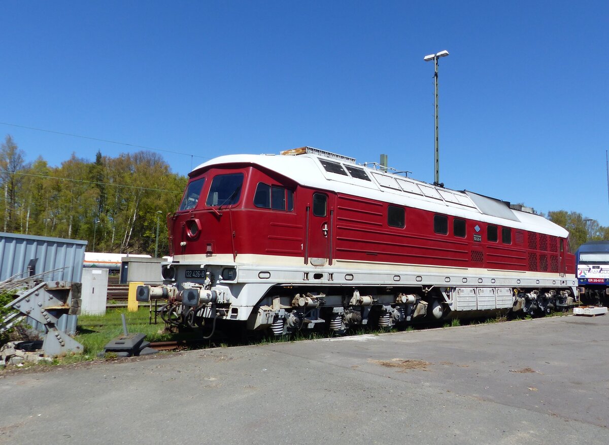 Die bordeauxrote Ludmilla 132 426-8 der Nossen-Riesaer Eisenbahn-Compagnie - NRE am 10.04.2026 in Niederwiesa. Die Lok hatte zuvor einen Güterzug von Chemnitz über Riesa nach Bad Schandau gebracht und fuhr hier ins heimatliche BW (SEM Chemnitz Hilbersdorf) zurück.