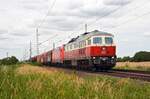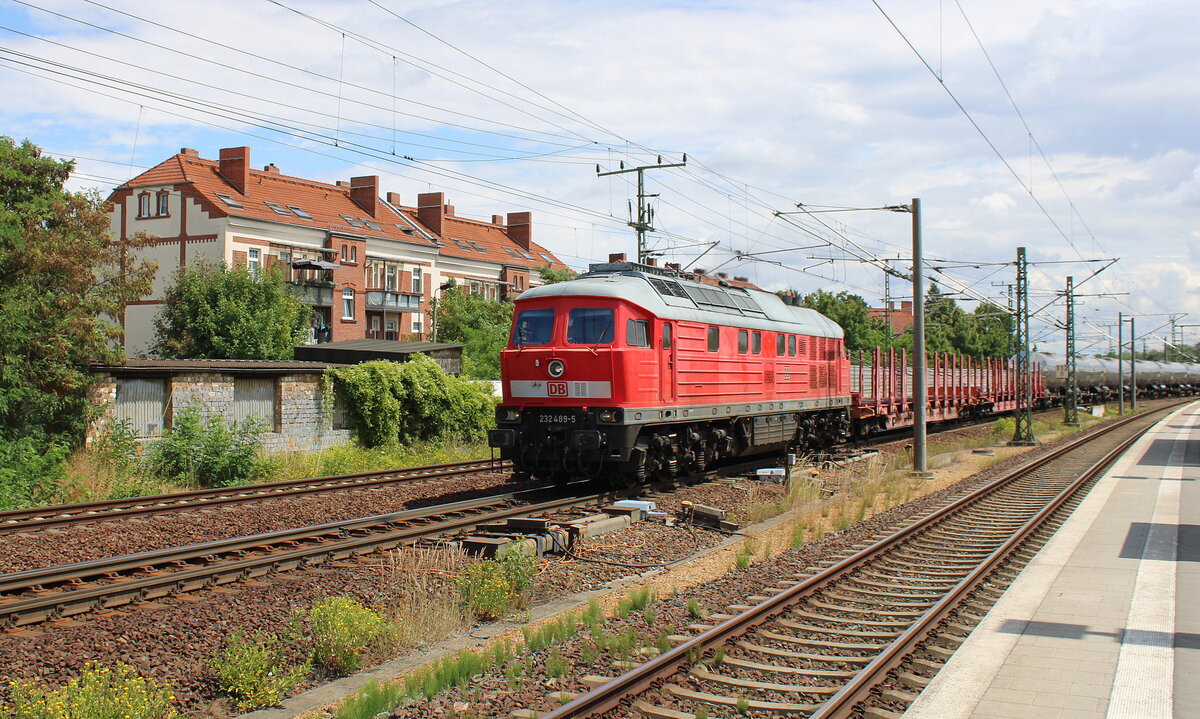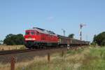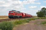 Gute zwei Stunden nach dem Zuführen der Loks kommen 232 469-7 (132 469-8) und 232 428-3 (132 428-4) mit Salz von Baalberge bei Nauendorf (Wettin-Löbejün) Richtung Halle (Saale) gefahren. Der Zug geht wie immer nach Wismar, konnte aber wegen Bauarbeiten nicht über Köthen verkehren.