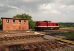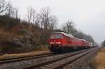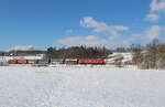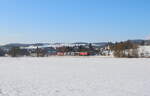 Übergabe aus Oelsnitz verlässt soeben mit Zug den Bahnhof Weischlitz am 19.01.2024 bei bestem Winterwetter.