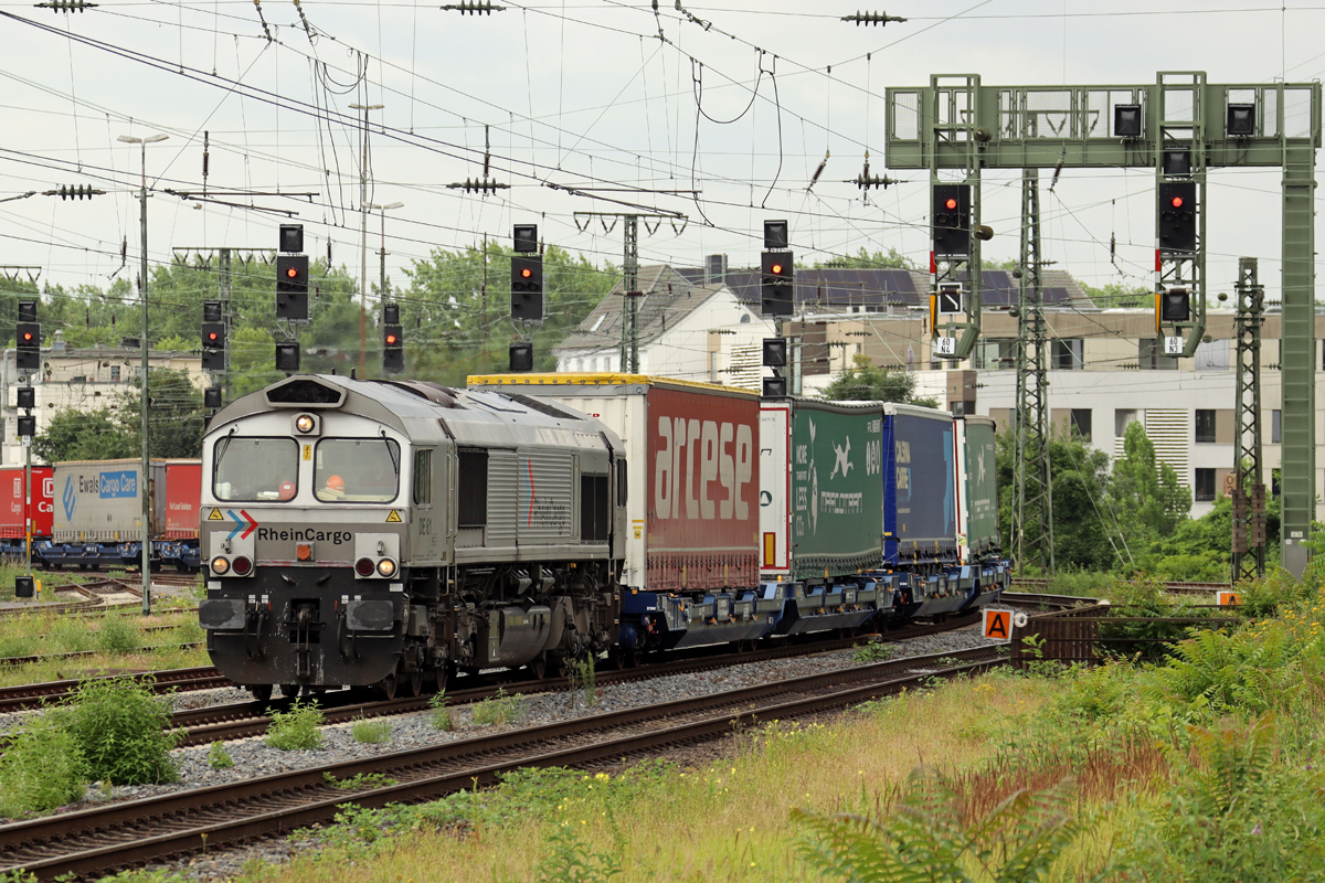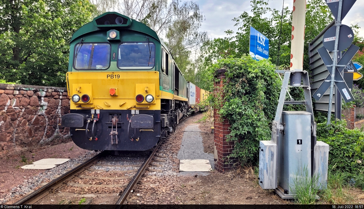 266 023-1 (PB 19 | EMD JT42CWR) rangiert mit der abendlichen Container-Leistung vom Hafen Halle-Trotha am Bahnübergang Trothaer Straße.