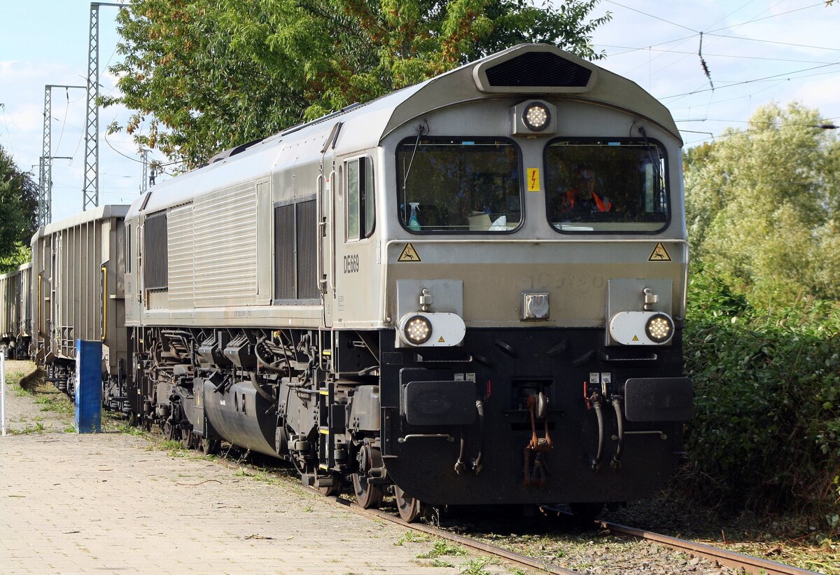 Treuchtlingen am 1. Oktober 2025: Auf Gleis 9 legen die 187 075 D-RHC der Rheincargo und die "Class 66" 1266 022-3 D-BRLL eine längere Pause ein. Am Haken haben die beiden Lok einen Zug mit mindestens 17 Waggons des Typs Uacs, beladen mit Braunkohlestaub.