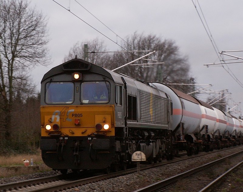 Behangen mit etlichen Kesselwagen fährt diese Class 66 in Richtung Kaldenkirchen. Das Foto stammt vom 21.01.2008