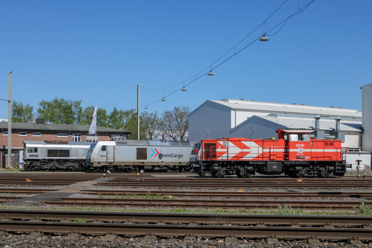 Die Class 66 DE6306 von DLC Railways rangiert in Aachen-West bei Sonne und Wolken.