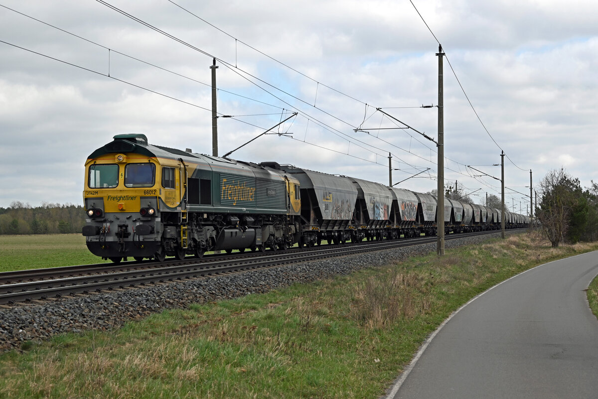 ein klasse Foto von der Class 66. Sehr gut der Blick in die Tiefe.