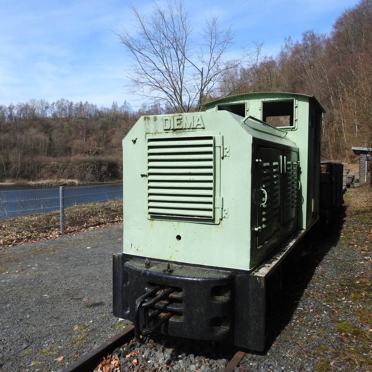 Eine kleine Diema DS 30 2357/1960 in Eisenberg (Pfalz) als Denkmal auf einem Kreisverkehr. Aufgenommen 31.01.2021