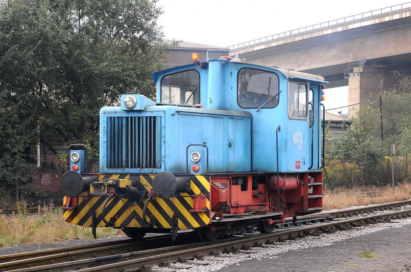 Lok 7 (Gmeinder V12-16) der Evonik Degussa am 09.11.14 abgestellt in Herne.