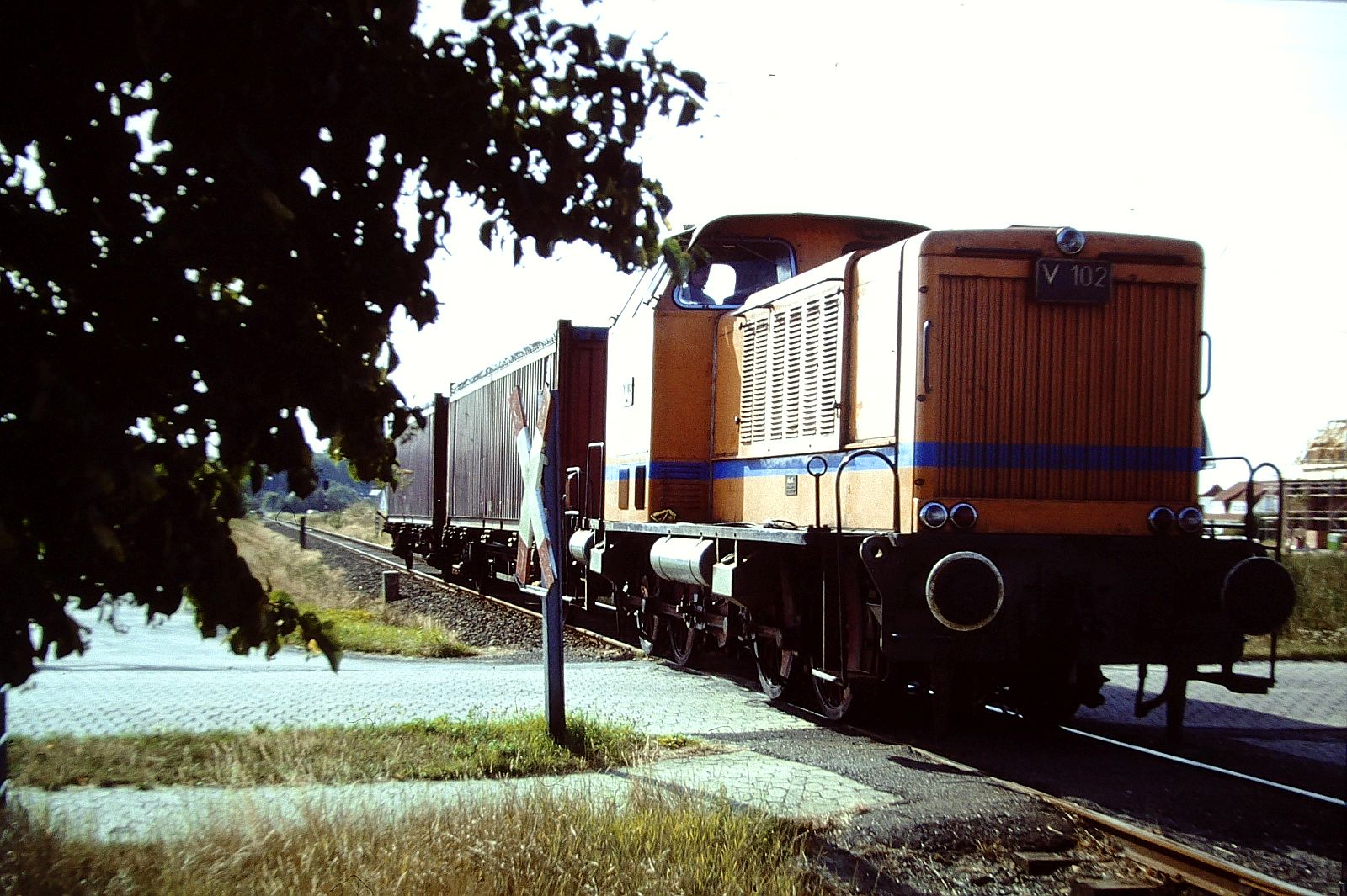 29.Juli 1992 bei Kirchweyhe V 102 der (BTh) ex. kleinbahn Bremen-Thedinghausen Bild 1 Meine Familie und ich waren zu Besuch bei Verwandschaft in Kirchweyhe und ich nutzte es ein paar Fotos zu machen