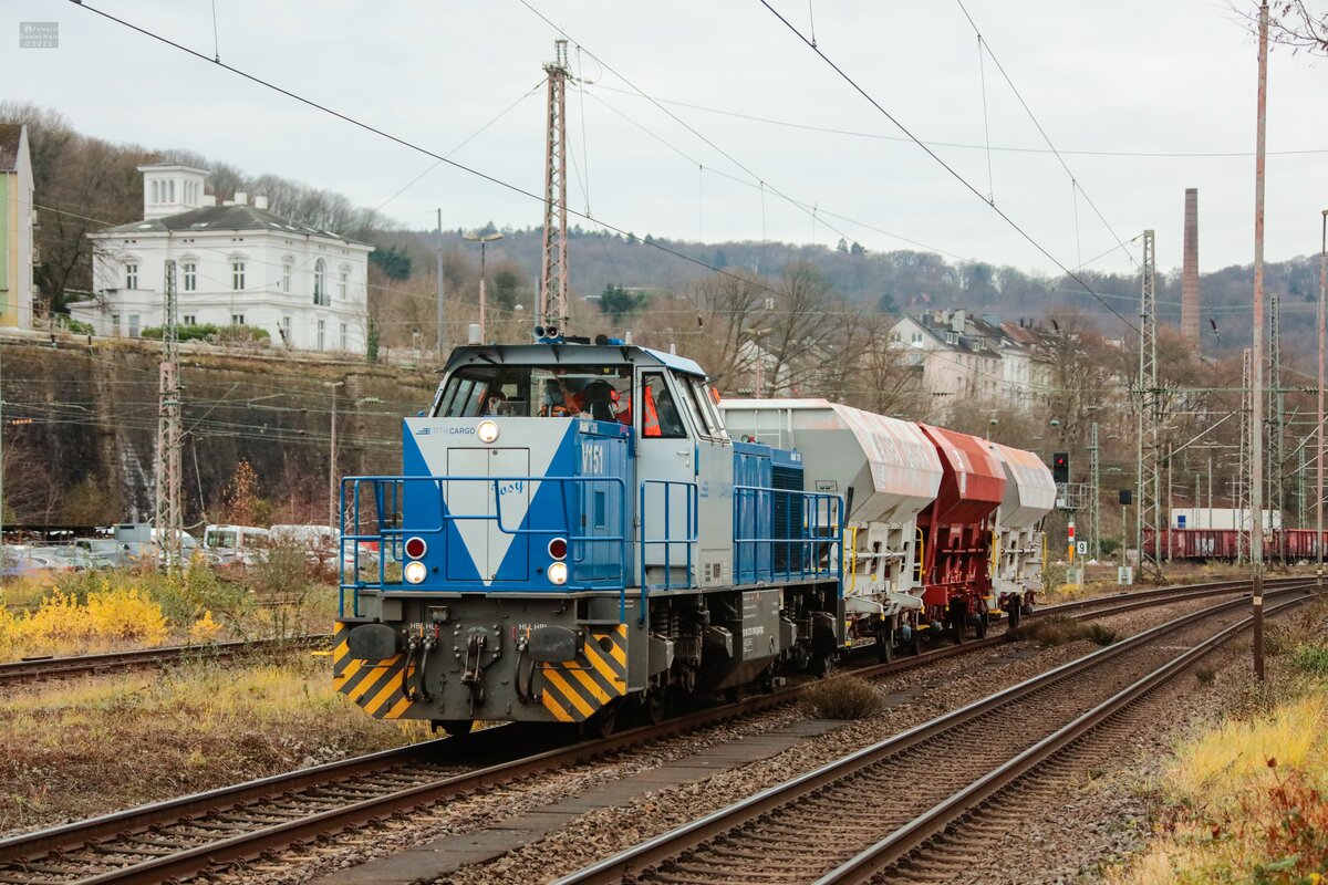 275 111 (Railflex) am 27.01.2018 mit Kalkzug auf der Angertalbahn (Wülfrath-Ratingen)