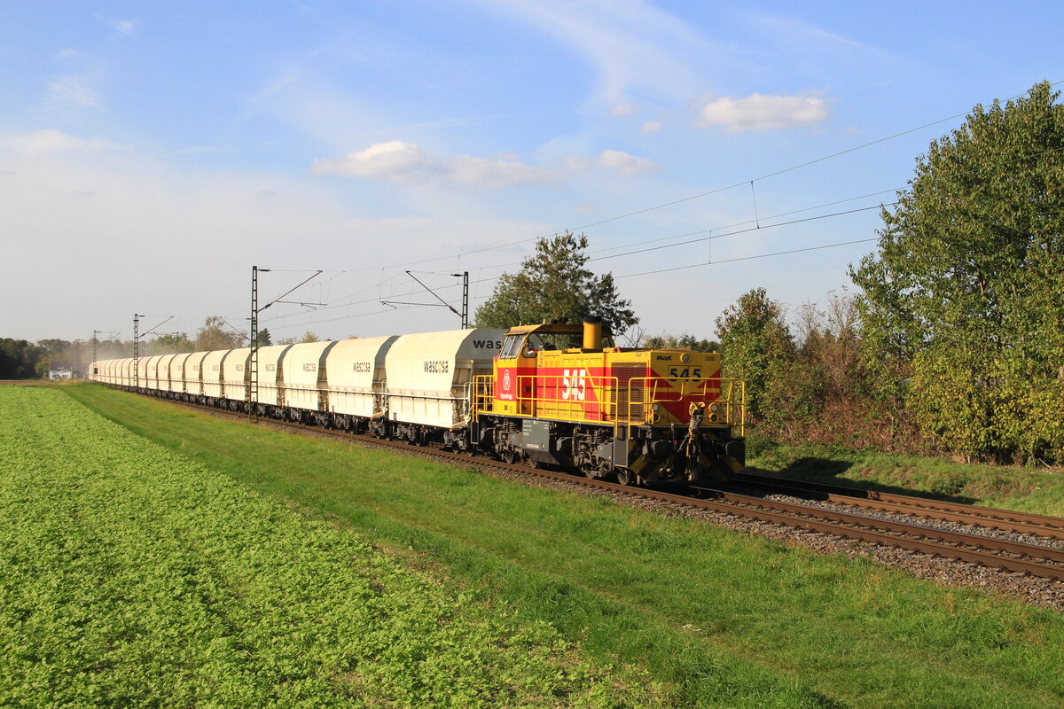RCC 275 815 zieht am 3 März 2026 ein Ganzzug durch Spellen und wird vom offener Stelle fotografiert.