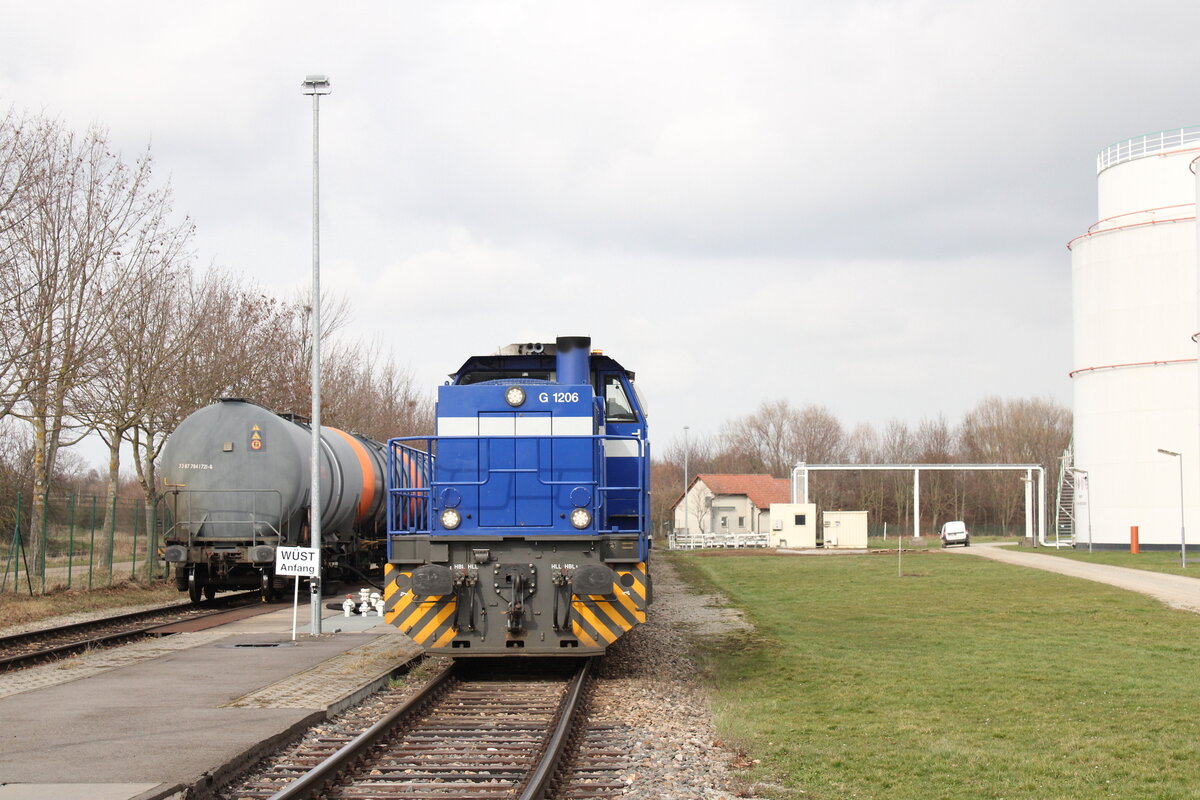 Die Vossloh MaK G 1206 der LOCON AG ( 92 80 1275 119-6 D-LOCON) am 25.11.2013 in Nassenheide.