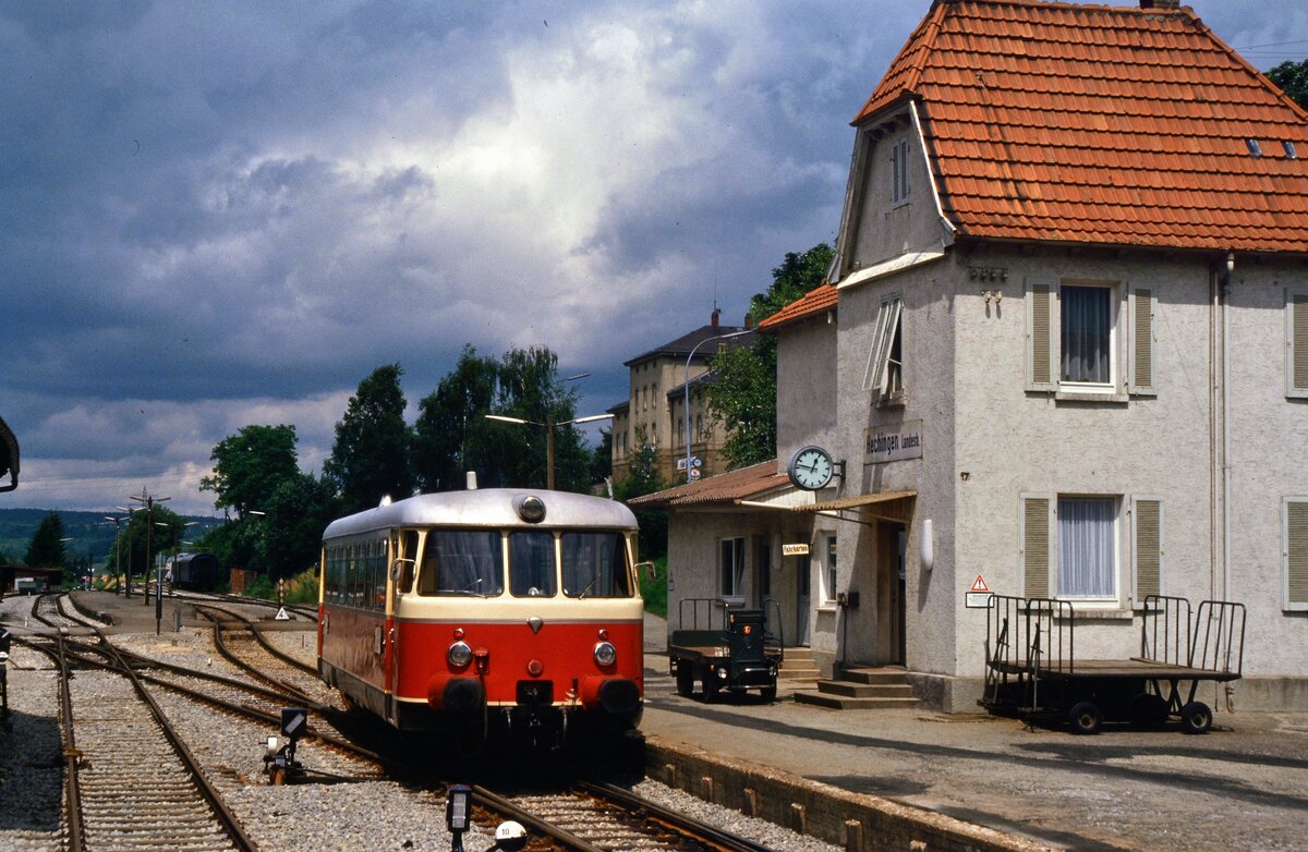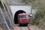 Am 09.08.13 gab es bei der Schwäbischen Alb Bahn einen Fahrtag. Hier der MAN Triebwagen VS 14 mit VT 8 bei der Ausfahrt in Münsingen.