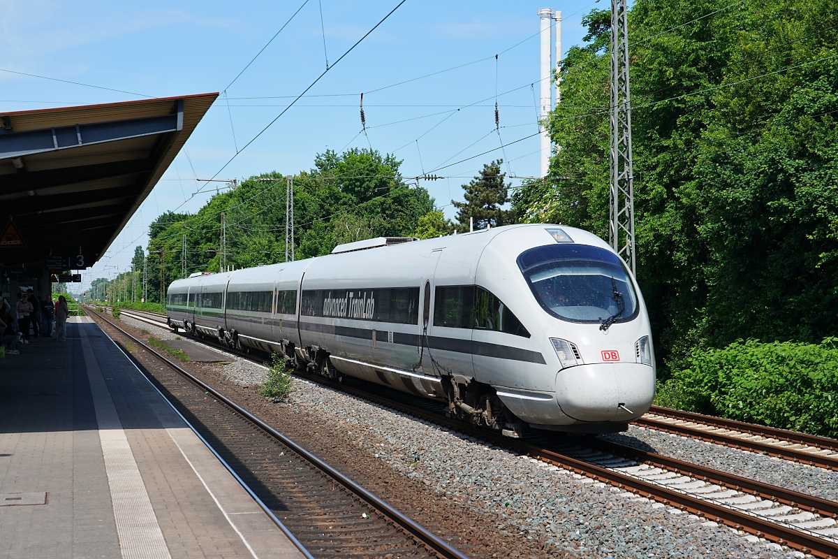 Bekanntlich wurden zwei Züge der Baureihe 605 (ICE TD) zum "advanced TrainLab" umgebaut. Zwischen dem 13. und 15.05.2025 pendelt der Triebzug 5519 mehrmals täglich zwischen Köln-Kalk und Düsseldorf-Reisholz, hier bei der Durchfahrt in Düsseldorf-Garath am 14.05.2025.