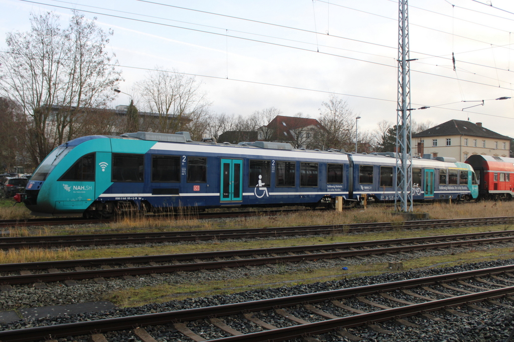 648 108 fährt fährend eines Gewitterschauers in Velten ein.