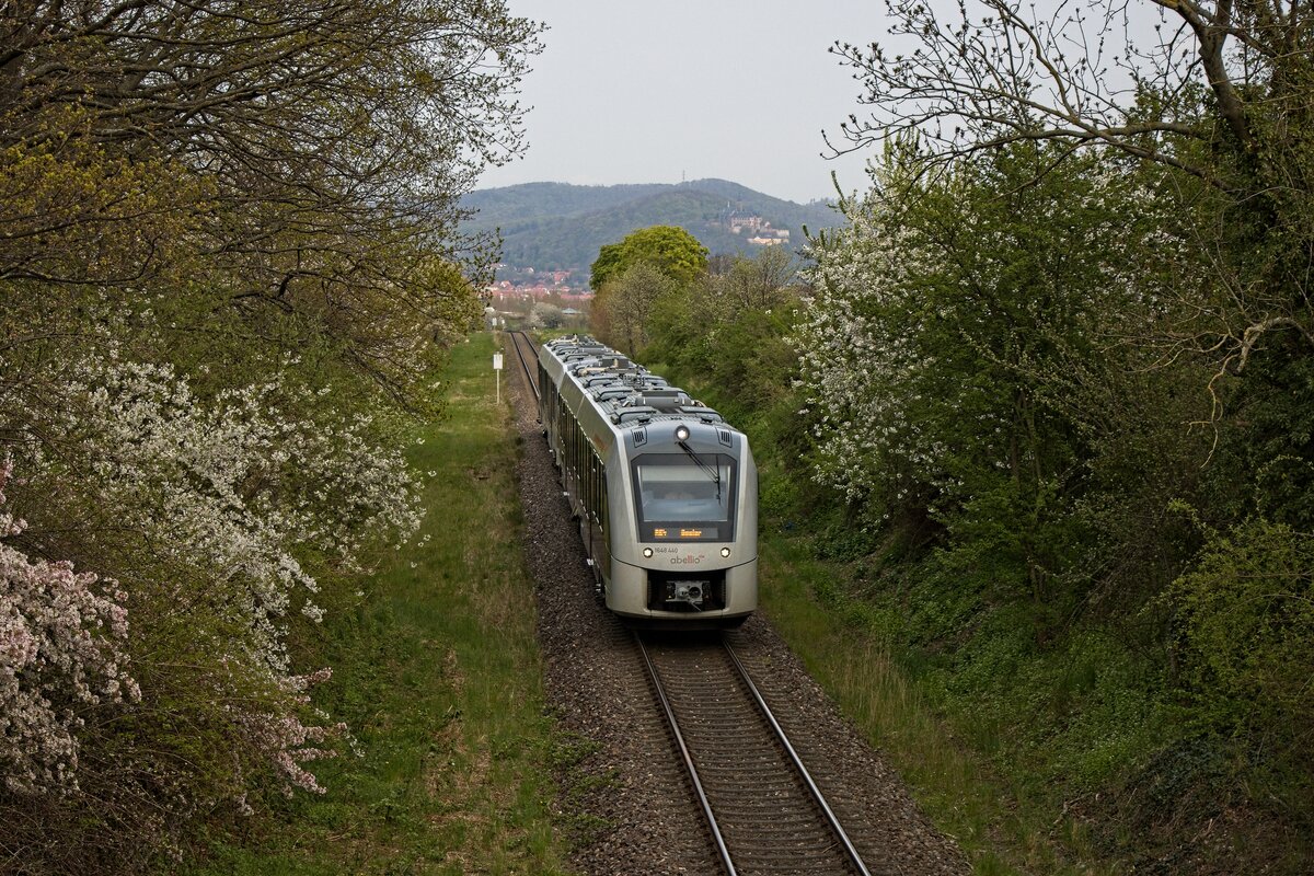VT 12.5 "Stuttgarter Rössle/Eierkopf" auf seiner Fahrt von Klein Mahner nach Stolberg (Harz) via Wernigerode, Aschersleben und Berga-Kelbra, hier zu sehen kurz vor Drübeck bei leichtem Nieselwetter.