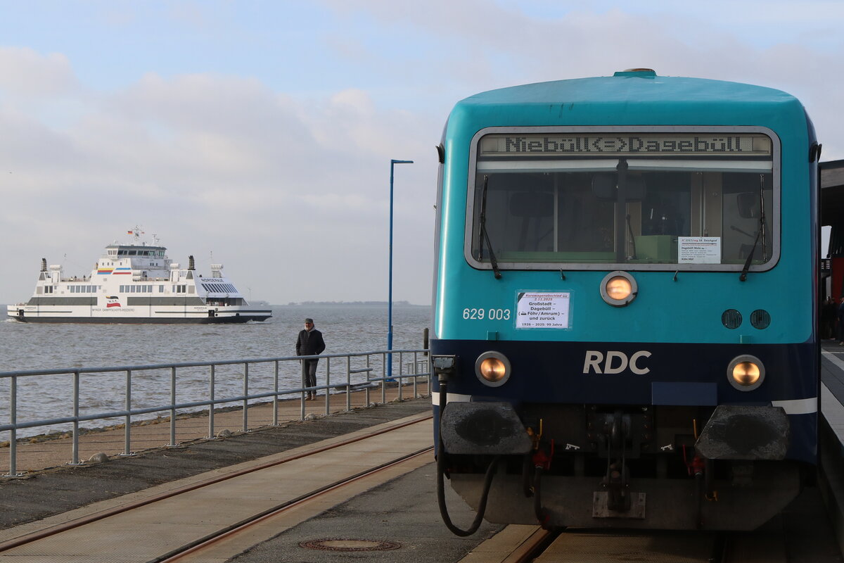 629 003 in Dagebüll Mole am 2. November 2025, dem letzten Einsatztag der IC Kurswagen auf dem Abschnitt Niebüll-Dagebüll nach 99 Jahren.