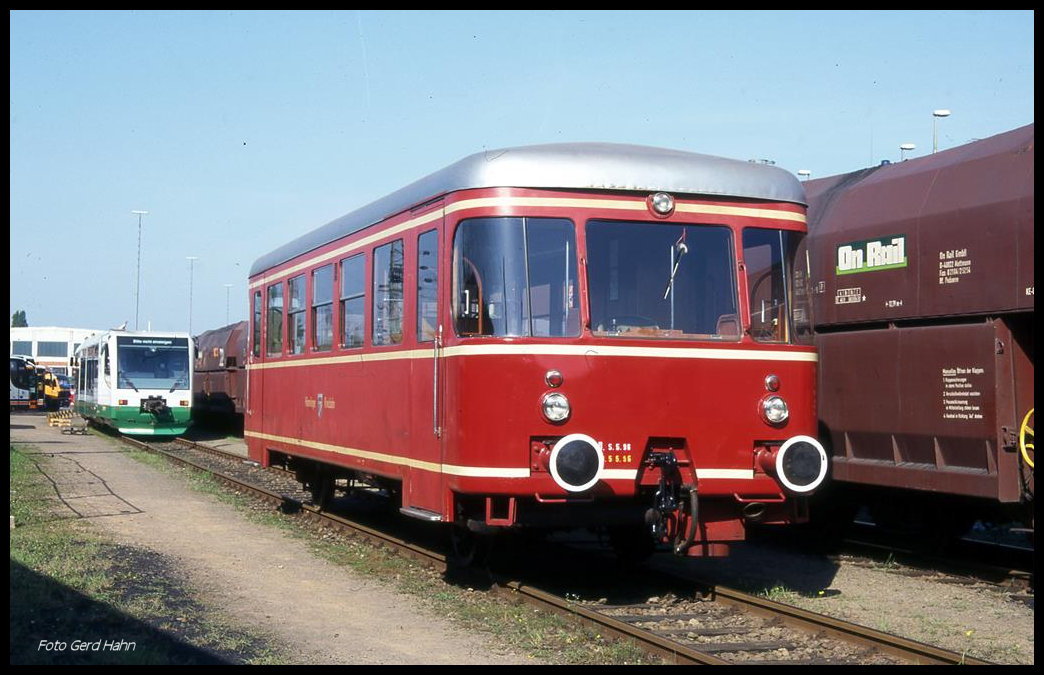 An seine alte Wirkungsstätte kehrte der Talbot Triebwagen, Baujahr 1953, der Hümmlinger Kreisbahn zurück, als er bei der Ausstellung der Mindener Kreisbahn am 10.5.1998 in Minden präsentiert wurde. Gerd Hahn