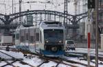 Integral S5D95 VT 112 "Miesbach" der Bayerischen Oberlandbahn südlich von Aulendorf. Der Zug fuhr nach Friedrichshafen, wo die Passagiere aufs Schiff umstiegen und nach Kressbronn fuhren, 06.03.10