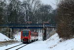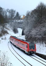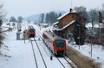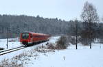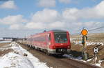 Zwei DB VT 611 sind bei Neunkirch im Klettgau auf der Fahrt von Ulm nach Basel Bad Bf. Das Bild zeigt im linken Teil ein neu geplante Strasse, aber keinerlei Anzeichen für den baldigen Doppelspurausbau und die Elektrifizierung der Strecke im Klettgau. 8. April 2010
