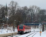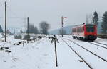 Auch das Verkehrsrot der Züge sind durch die gelb-weiße Farbgebung abgelöst. Hier fährt 611 008 nach Neustadt (Schwarzwald) auf Gleis 1 in den Bahnhof ein.