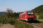 Zwei DB VT 611 sind bei Neunkirch im Klettgau auf der Fahrt von Ulm nach Basel Bad Bf. Das Bild zeigt im linken Teil ein neu geplante Strasse, aber keinerlei Anzeichen für den baldigen Doppelspurausbau und die Elektrifizierung der Strecke im Klettgau. 8. April 2010