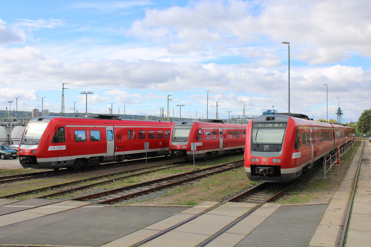 DB 612 600 + 612 684 + 612 175 am 30.08.2025 im DB Werk Erfurt. Zum 100-jährigen Jubiläum des Bahnbetriebwerks Erfurt gab es einen Tag der offenen Tür.
