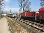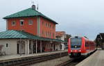 BUCHLOE (Landkreis Ostallgäu), 28.04.2025, DB 612 619 als RE71 nach Augsburg Hbf bei der Einfahrt in den Bahnhof Buchloe