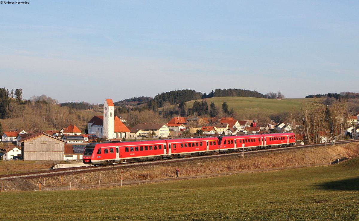 612 001- und 612 *** als RE 3292/RE 3392 (Augsburg Hbf-Lindau Hbf/Oberstdorf) bei Günzach 24.3.18