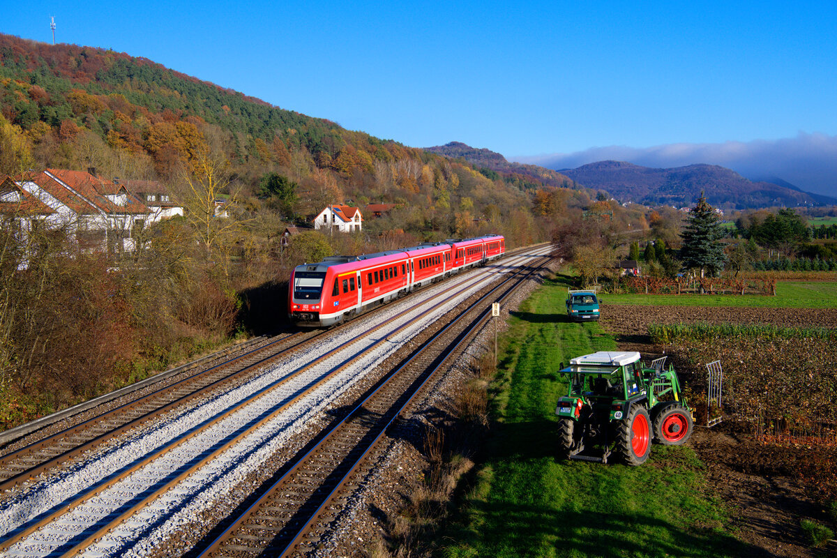 612 170 DB Regio als RE 3462 (Bayreuth Hbf - Nürnberg Hbf) bei Herbsruck rechts der Pegnitz Richtung Nürnberg Hbf, 09.11.2020