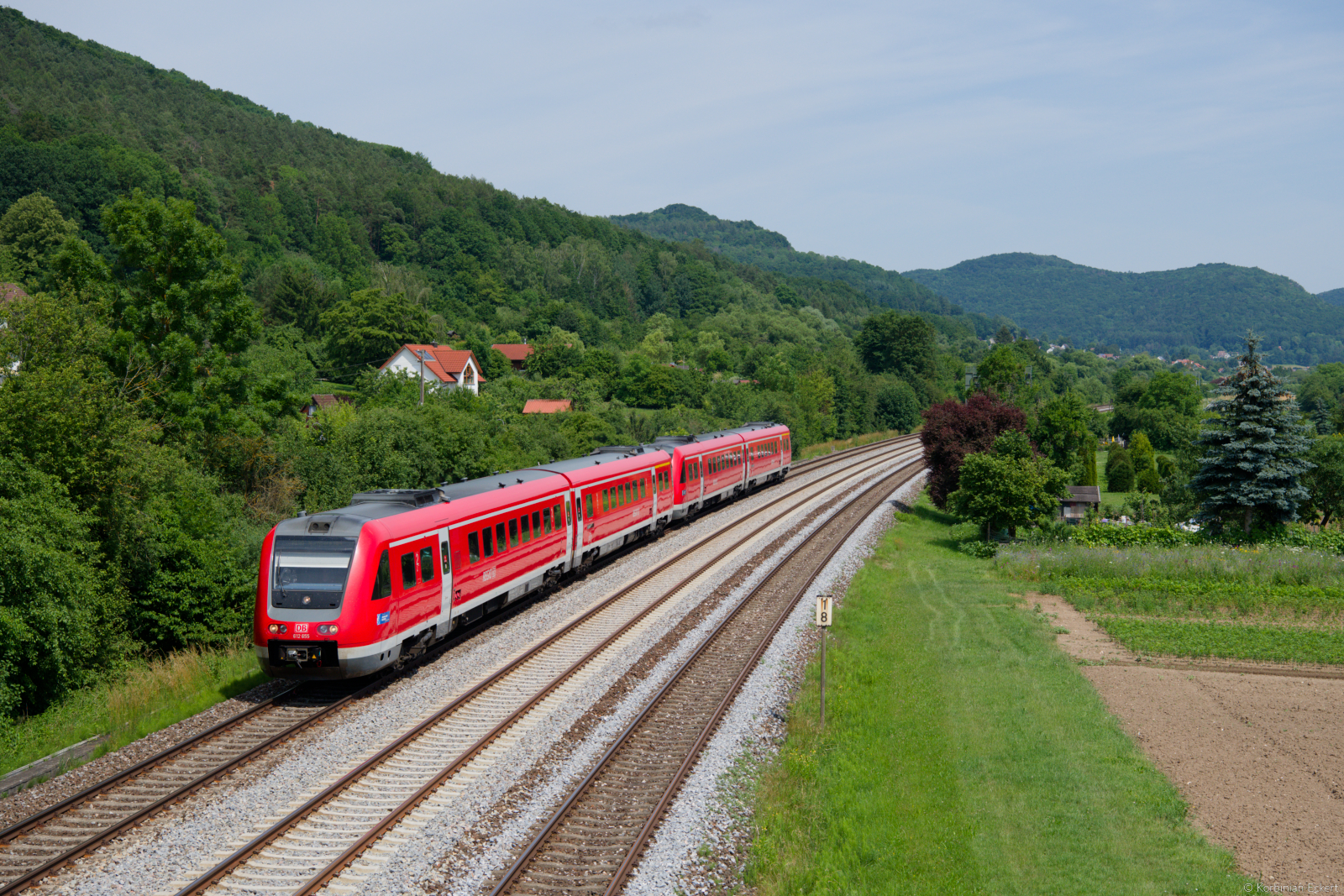 612 155 DB Regio als RE 3558/3018 (Regensburg Hbf / Neustadt (Waldnaab) - Nürnberg Hbf) bei Hersbruck rechts der Pegnitz, 28.06.2021