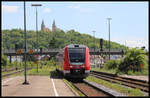 BUCHLOE (Landkreis Ostallgäu), 28.04.2025, DB 612 619 als RE71 nach Augsburg Hbf bei der Einfahrt in den Bahnhof Buchloe