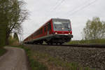 Auf seiner Rückfahrt von Mühldorf nach Burghausen wurde 628 559-7 erneut in Heiligenstatt abgelichtet. (05.05.17)