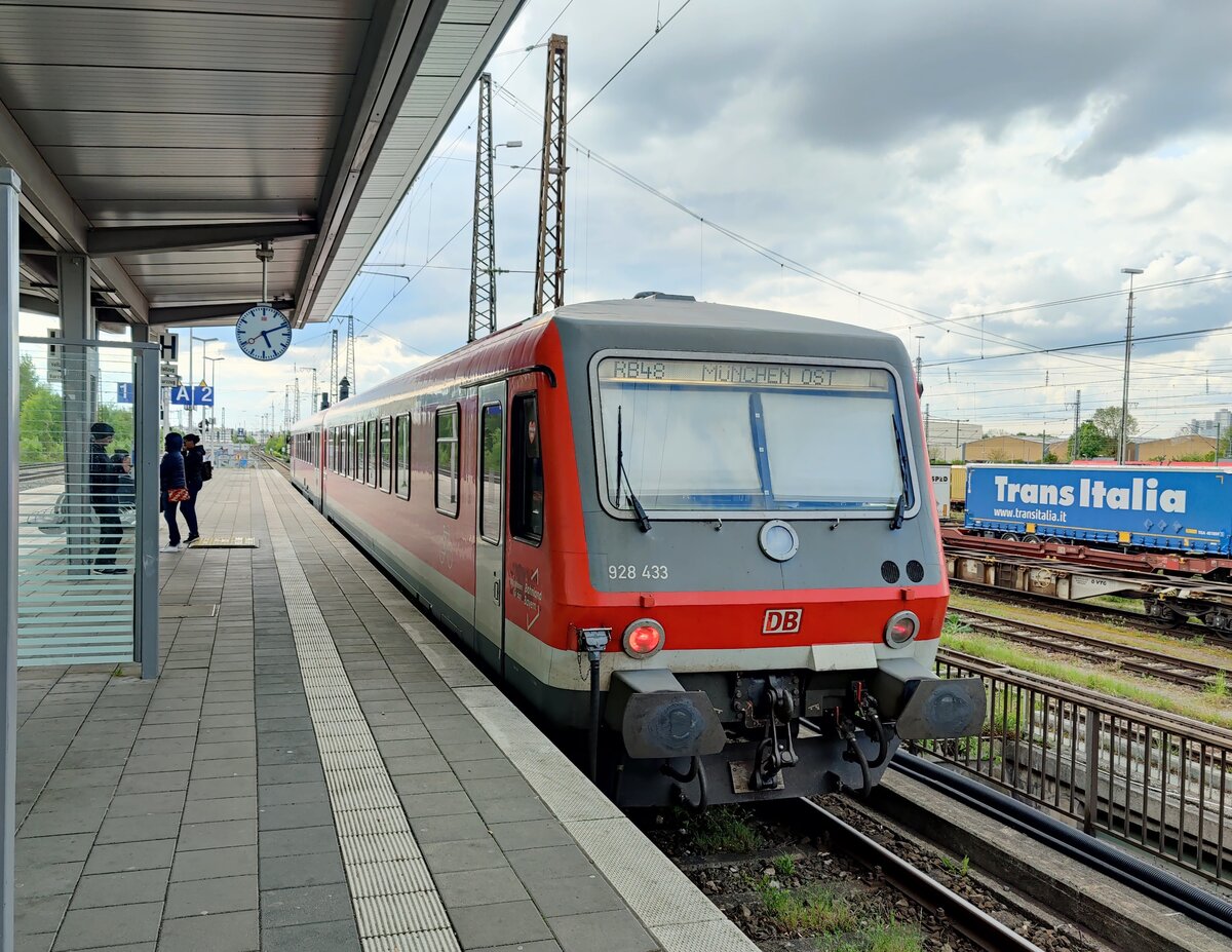 628 433 fuhr am 17.05.2023 mit der RB48 nach München Ost. Da der Zug am S-Bahn Bahnsteig Berg-am-Laim vorbei fuhr und es danach massive Probleme gab, gehe ich von einer Fehlleitung des Zuges aus.