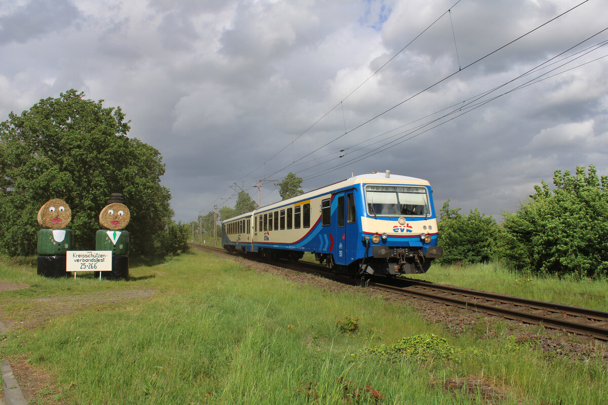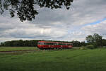 EVB 628 151 fährt als RB76 von Rotenburg(Wümme) nach Verden(Aller) und passiert hier gerade Holtum. (27.05.2022)