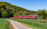 Der Tag neigt sich dem Ende und im letzten Licht kommt nochmal was vorbei. 628er in Doppel Garnitur zwischen Schwindegg und Dorfen am 4.11.25.
