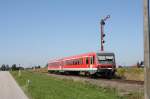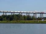 Nachschuss auf Triebwagen 628/928 681, der als Regionalbahn Lüneburg - Lübeck auf dieser Brücke soeben den Elbe-Seitenkanal überquert; 21.09.2009