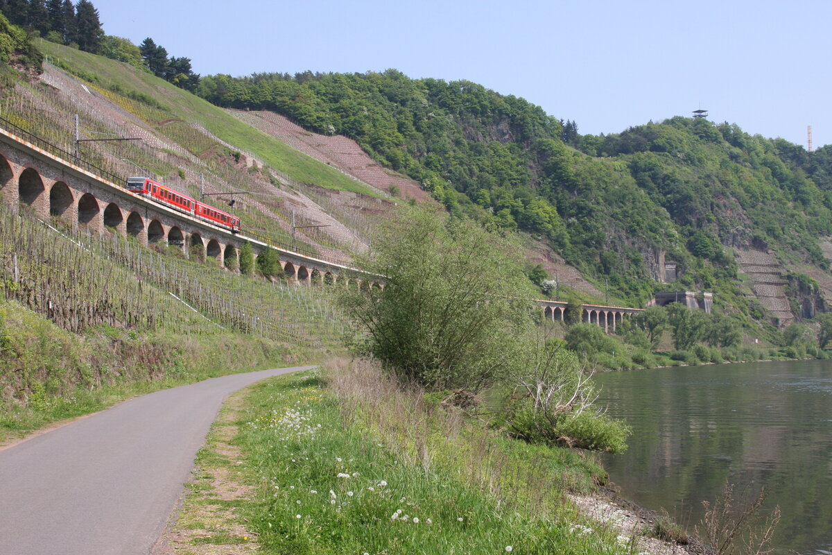 DB Regio 628 648 (Bw Trier) auf der Linie RB94 zwischen Bullay und Traben-Trarbach auf dem Pünderich-Viadukt am 1. Mai 2009.