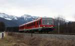 628 591 war am 31. Dezember 2025 auf der  Chiemgau-Bahn  im Einsatz. Aufgenommen bei  Umratshausen-Ort .